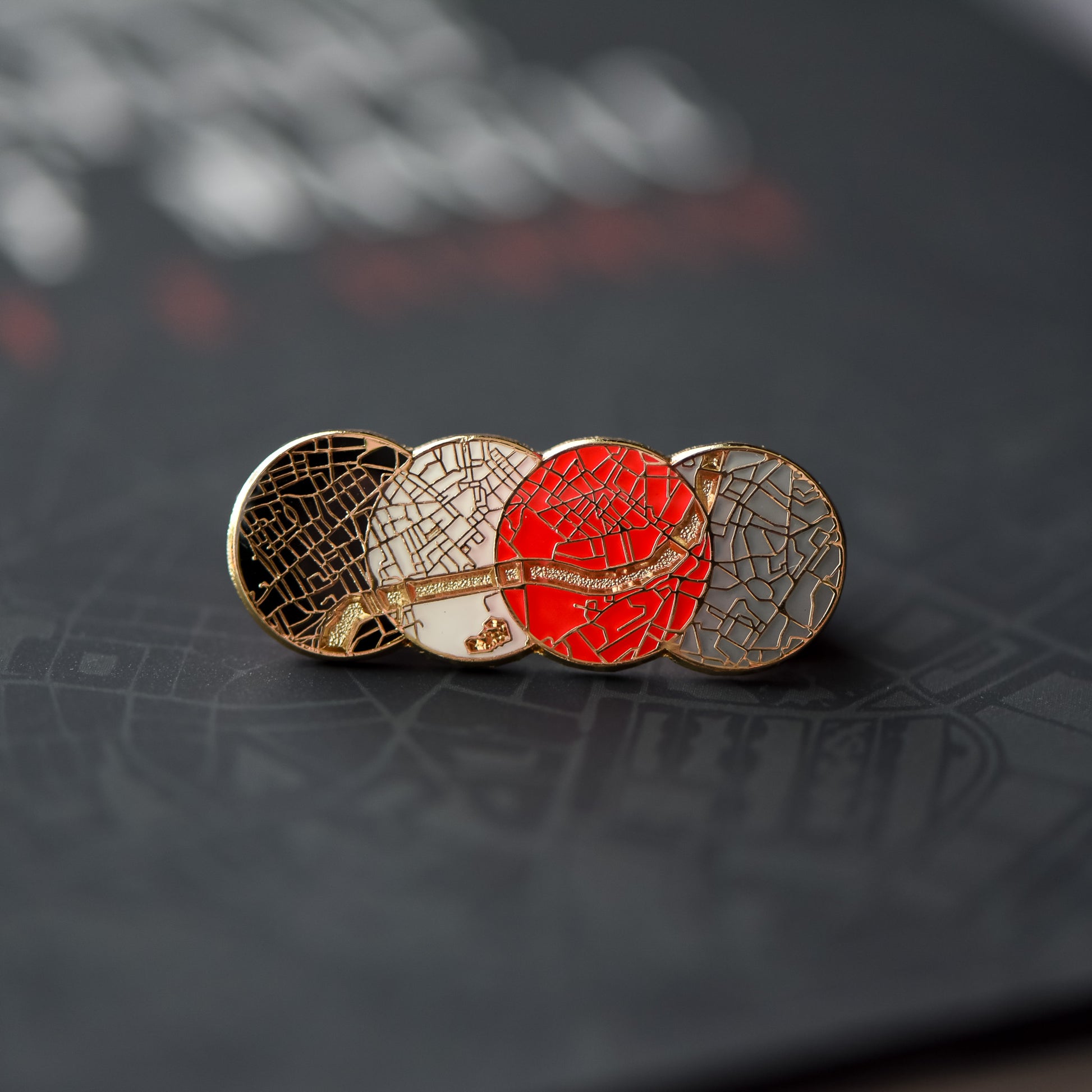 This pin is made with high quality soft enamel with gold plating. It has an epoxy dome for a smooth finish.