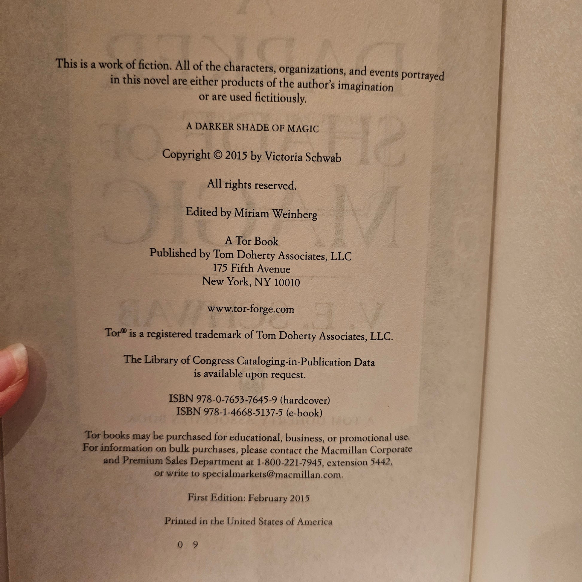 A Darker Shade of Magic; hardback; 1st edition; Like new