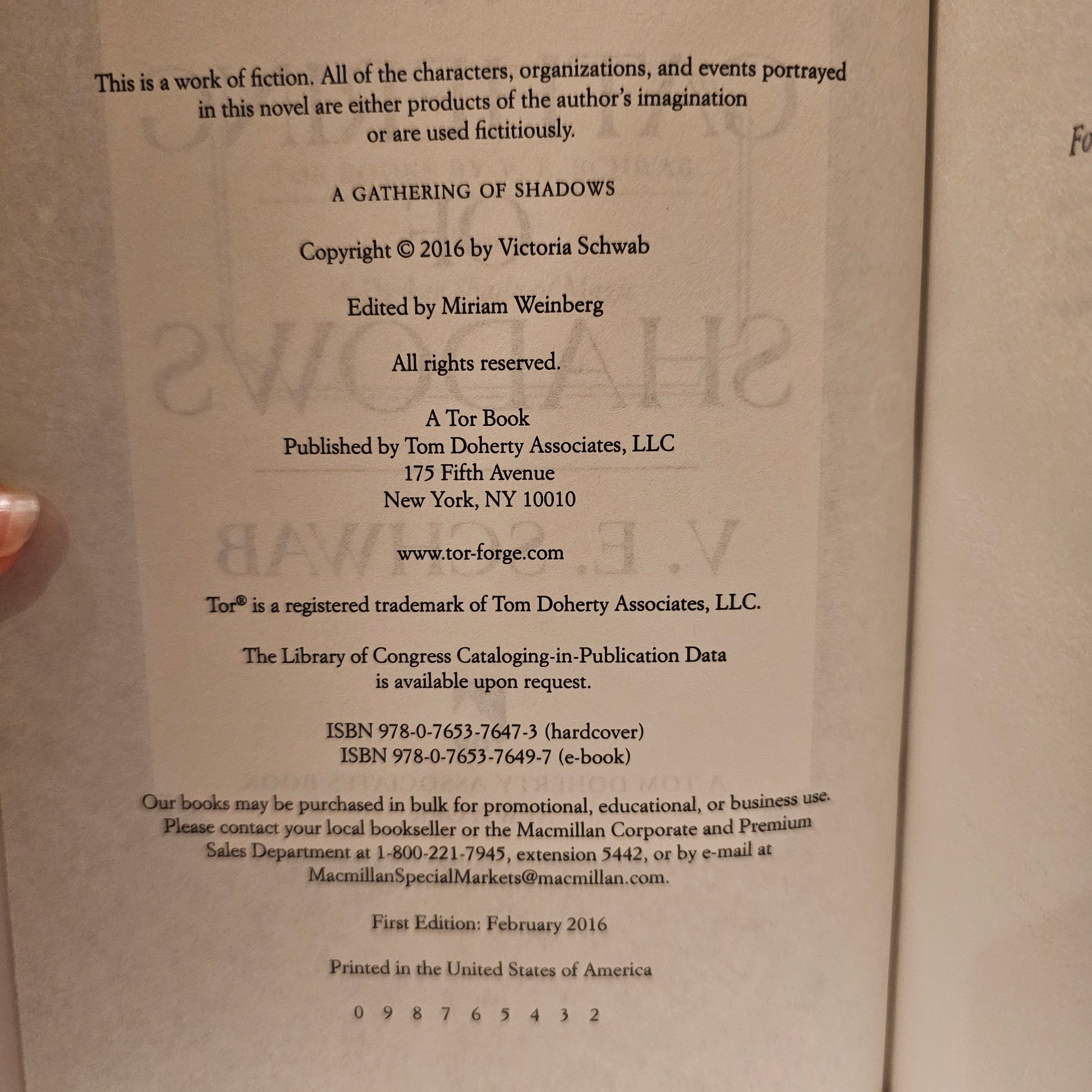 A Gathering of Shadows; hardback; 1st edition; Like new