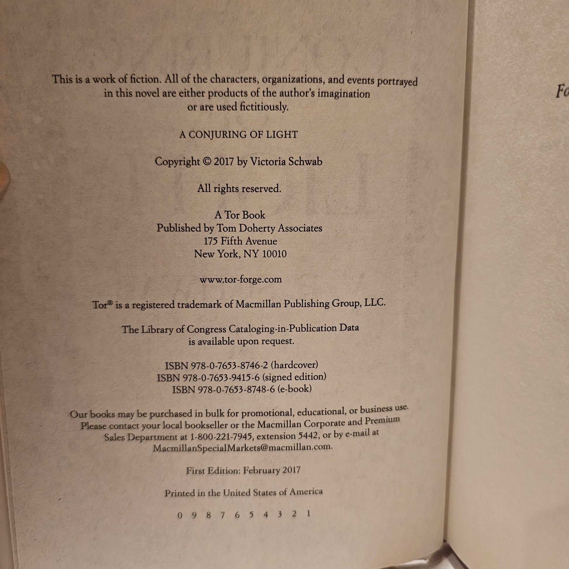 A Conjuring of Light; hardback; 1st edition; Like new