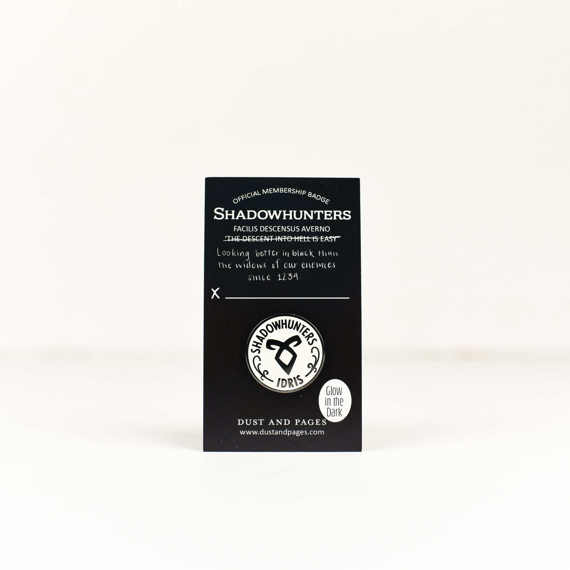 Whatever your go to shadowhunter motto, this pin is for you. Show your shadowhunter fandom pride with this glow in the dark hard enamel pin. Perfect for shadowhunter conventions and book signings!