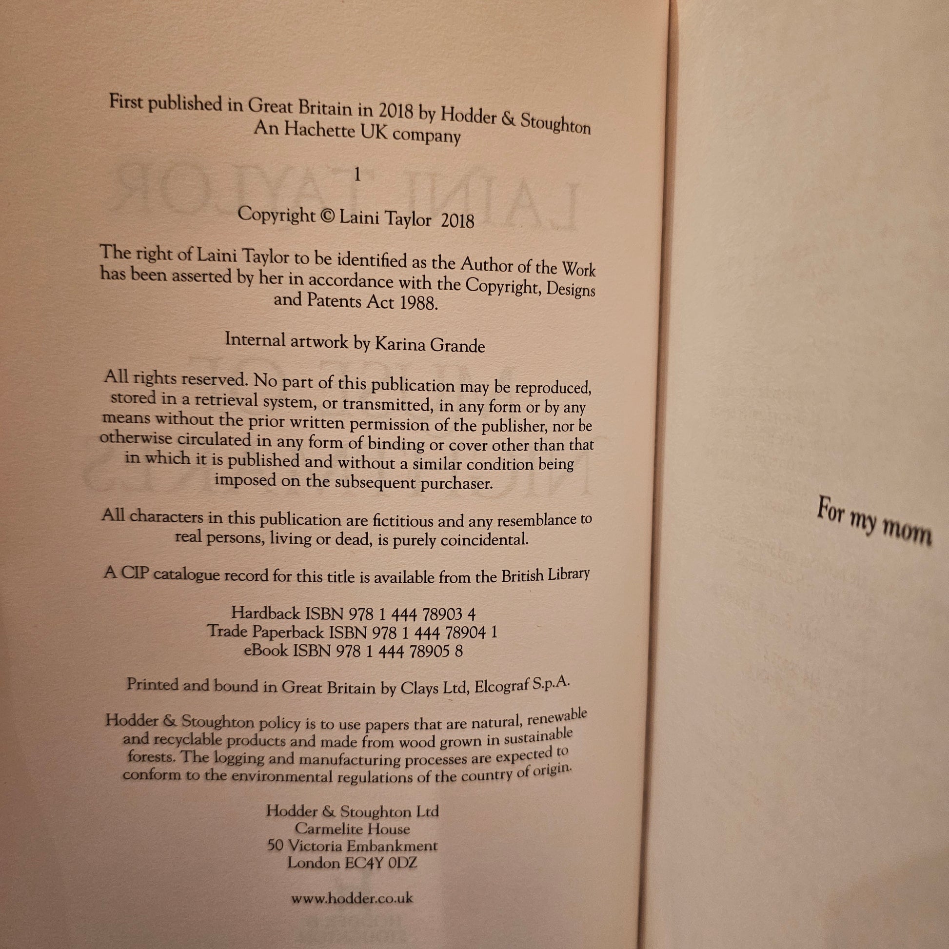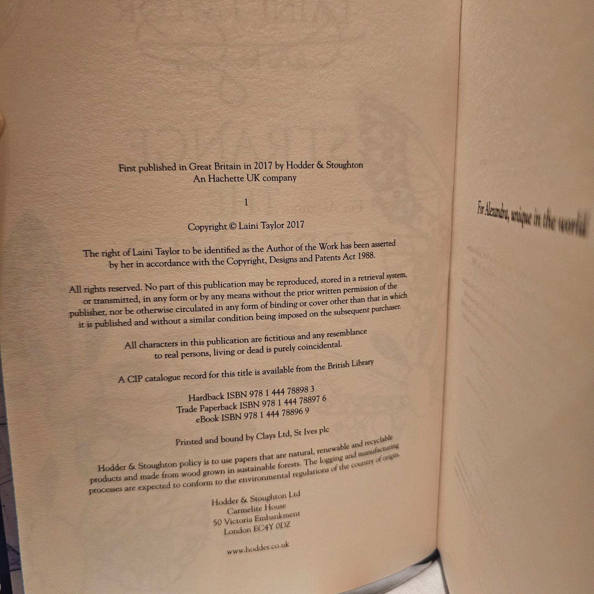 Strange the Dreamer; hardback; 1st edition; signed; blue sprayed edges; Like new
