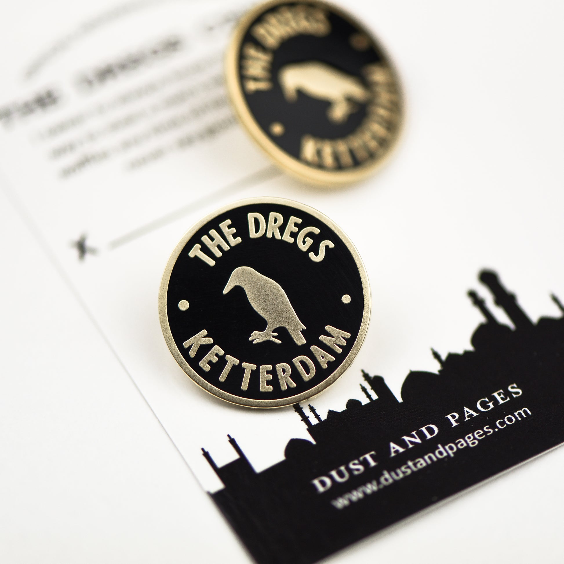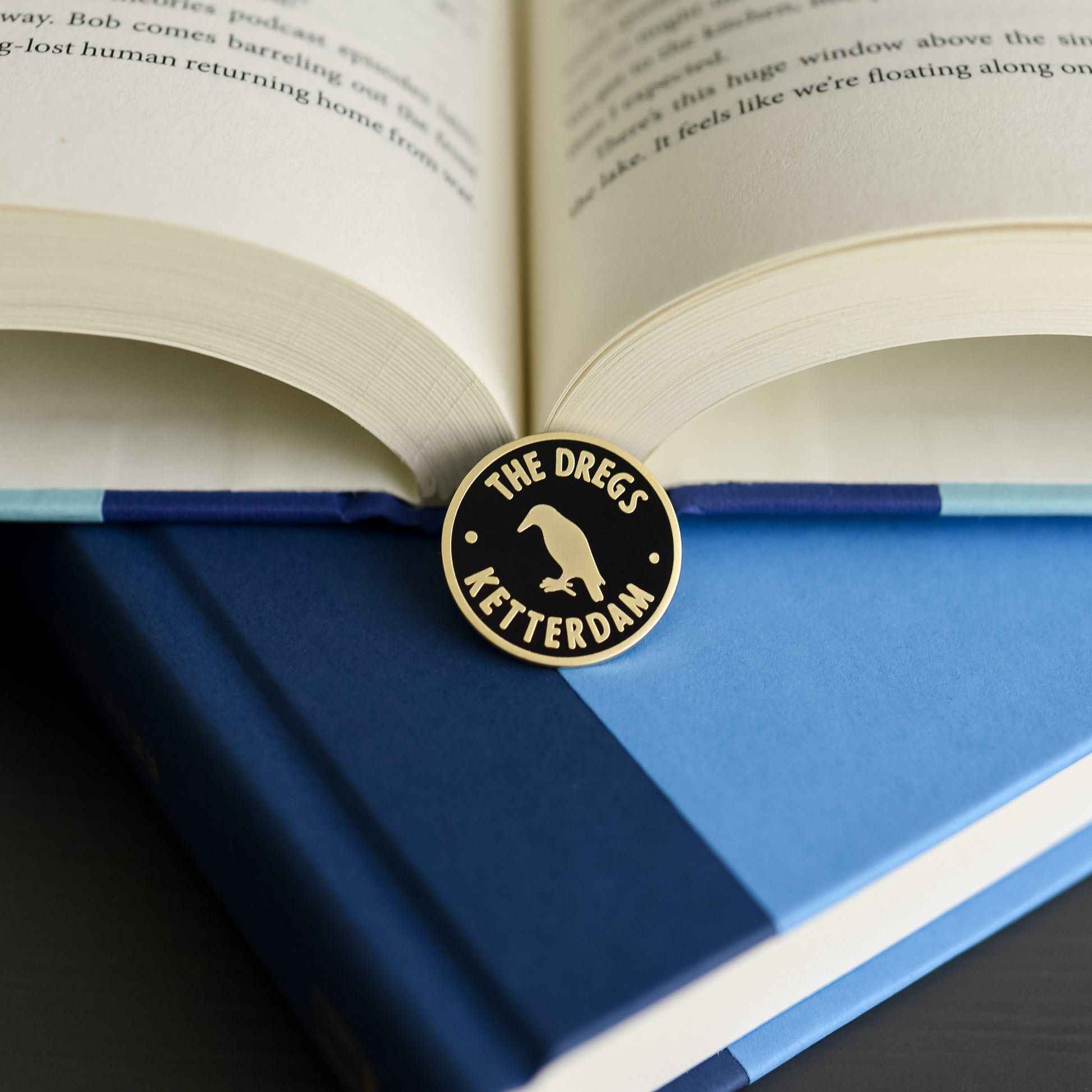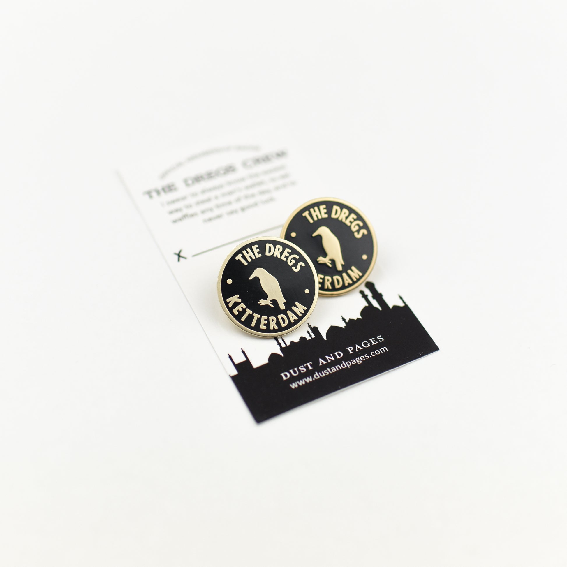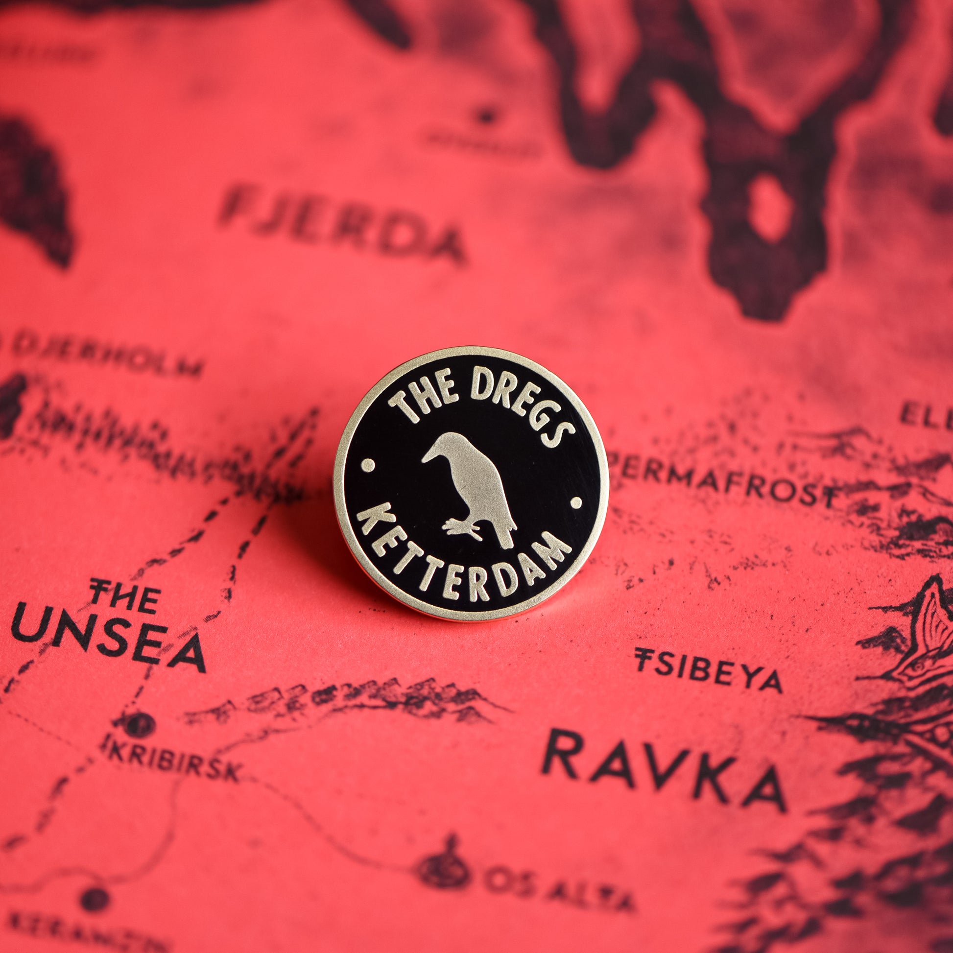 Show to the world you are a member of the Dregs crew, the greatest gang in Ketterdam. Must be worn especially while eating waffles or wearing a scheming face. This Six of Crows inspired pin is perfect for conventions, signings, or even cosplay!