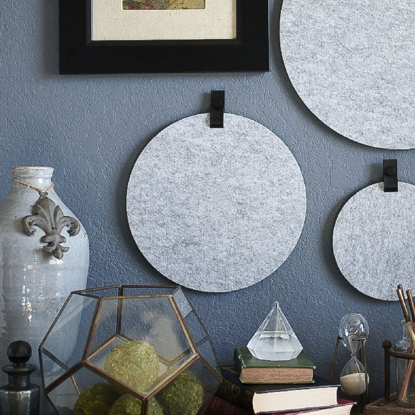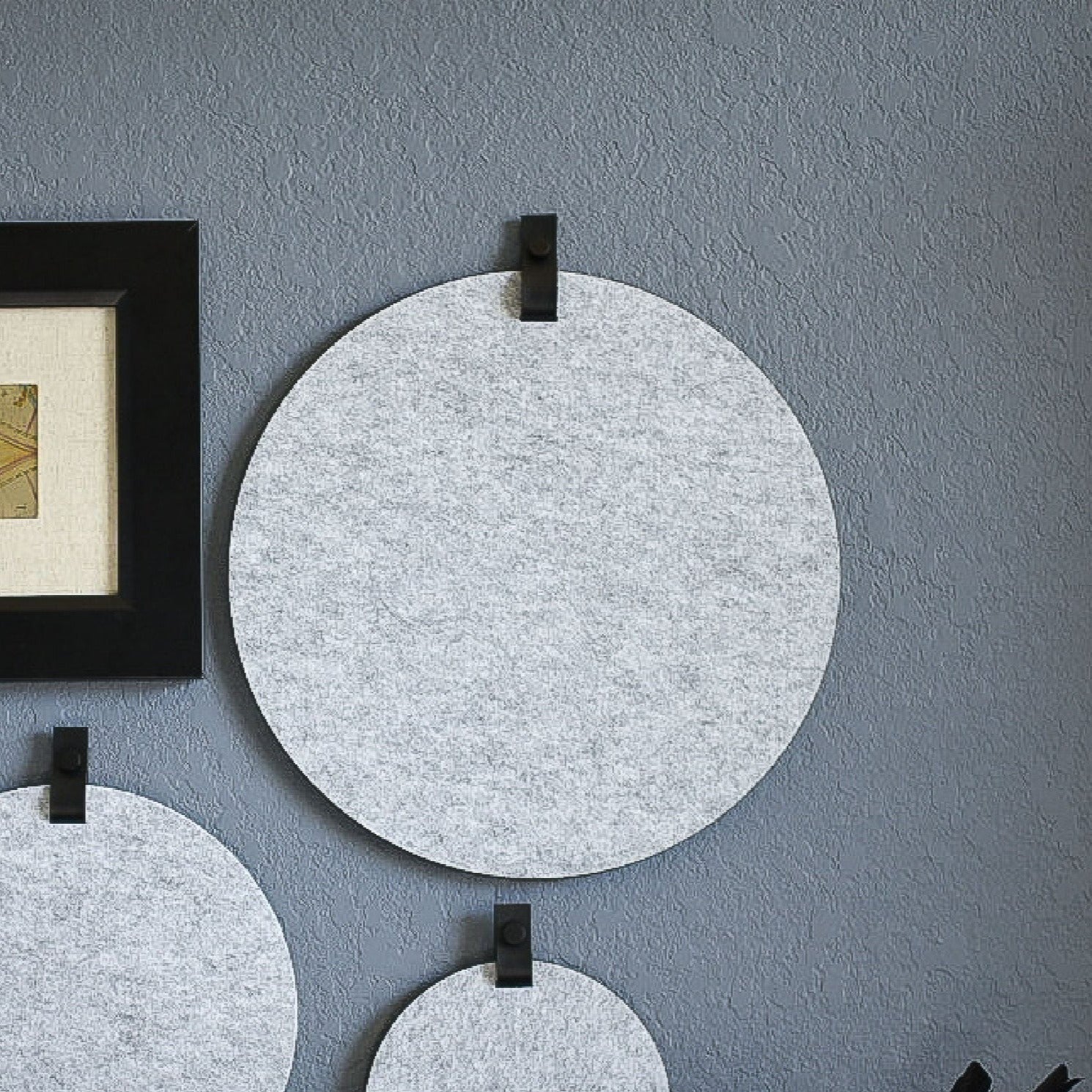 Each felt pin board comes with silver and black metal caps, screw, and black and cream faux leather tabs to attach to your wall. Simply choose your favorite sizes and pick your favorite color combo when they arrive to your home.